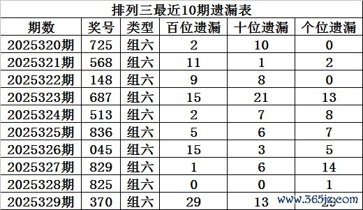 上期回来:成列三第2025329期奖号:370,组六,直选遗漏总值为71期。